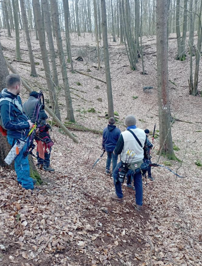 Nach dem obligatorischen Aufwärmtraining (bestehend aus Pfeile zählen, Bögen bewundern und fachmännischem Nicken) sowie einer kurzen Einweisung durch die beiden Tour-Guides Darius Landsperger und Torben Koch, ging es auch schon los auf den rund 5 km langen Rundkurs.